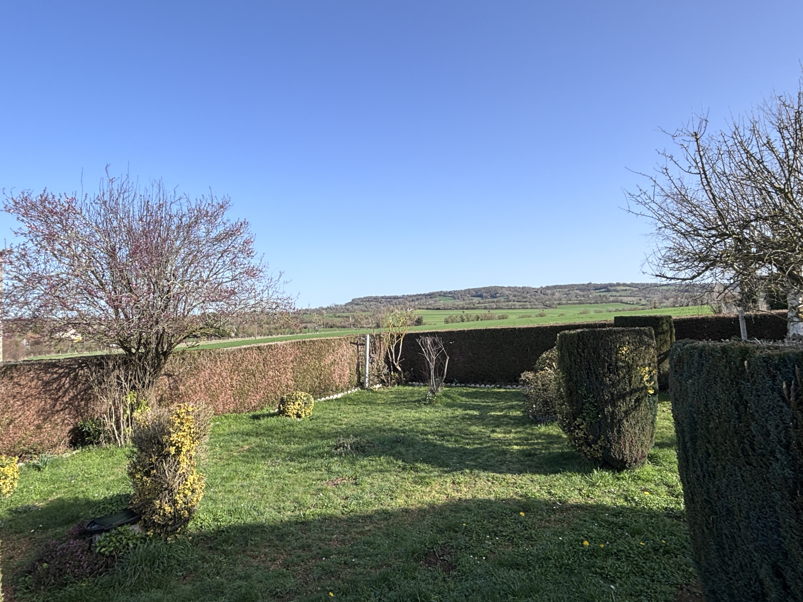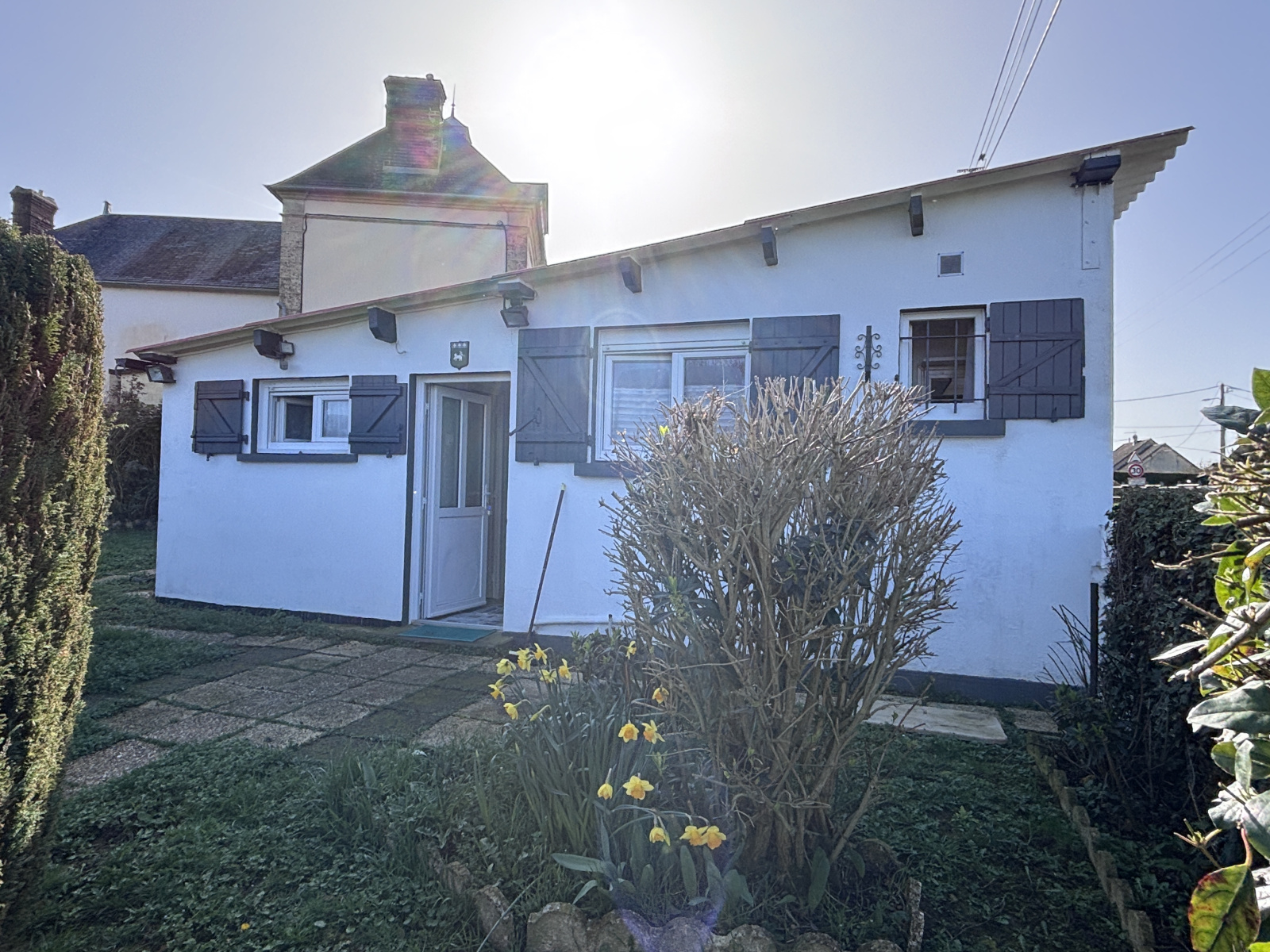 Agréable jardin avec petites annexes attenantes.